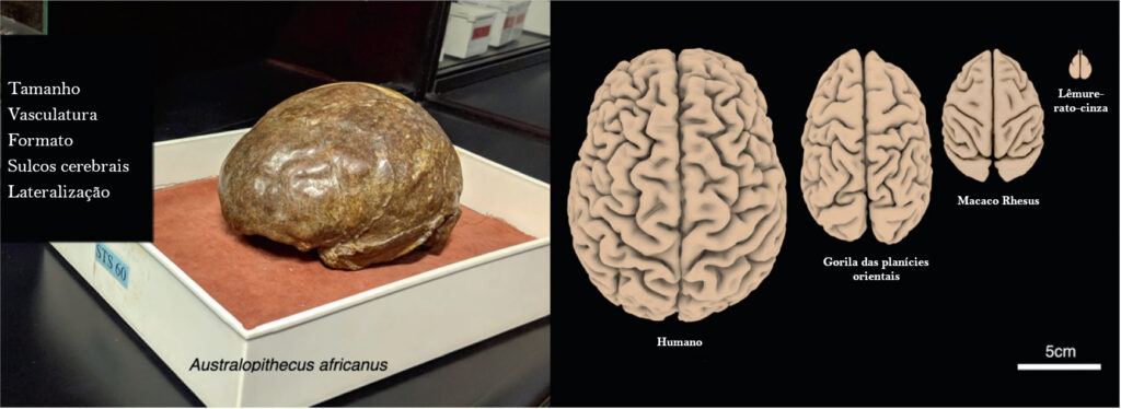Um dos objetos de estudo dos cientistas são os endocasts, que são moldes internos do endocrânio que ocorrem naturalmente através da fossilização ou são fabricados artificialmente e que são muito parecidos com cérebros. À medida que o cérebro aumenta e se expande durante o nosso crescimento, suas estruturas mais superficiais deixam uma marca no osso craniano. Essas impressões endocranianas fornecem evidências sobre o tamanho do cérebro, a vasculatura das meninges e aspectos da morfologia cerebral, incluindo a forma geral, os padrões sulcais e a lateralização. Através dos endocasts, é possível ter acesso a essas impressões, porém é necessário muito mais do que isso para se compreender de forma abrangente a função cerebral, como microestrutura, expressão gênica, conectividade, bioquímica, fisiologia, comportamento, entre outros.